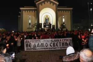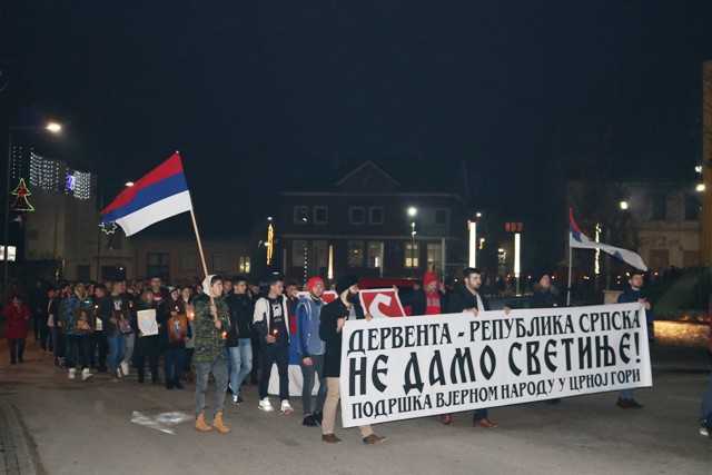 У Храму Успења Пресвете Богородице у Дервенти вечерас се окупио  многобројни народ на молебану који је служен за за братски народ у Црној Гори, који протестује против спорног Закона о слободи вјероисповијести у тој земљи.