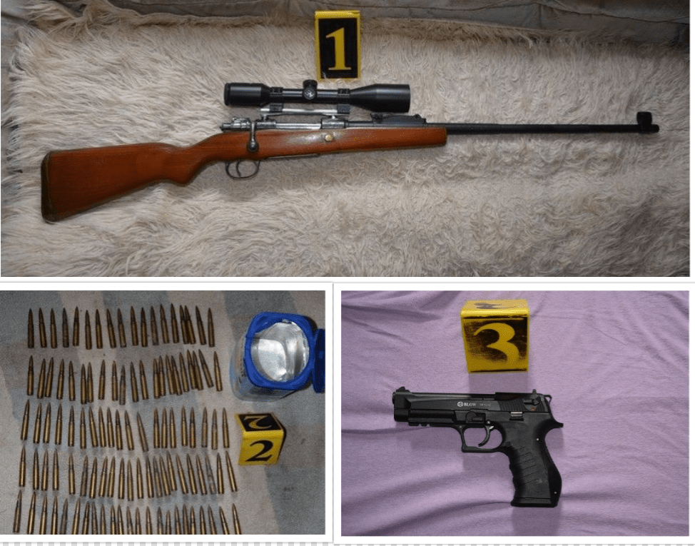 Приликом претреса пронађена је и одузета војна пушка са оптичким нишаном, 108 комада војних метака и гасни пиштољ са припадајућим оквиром.