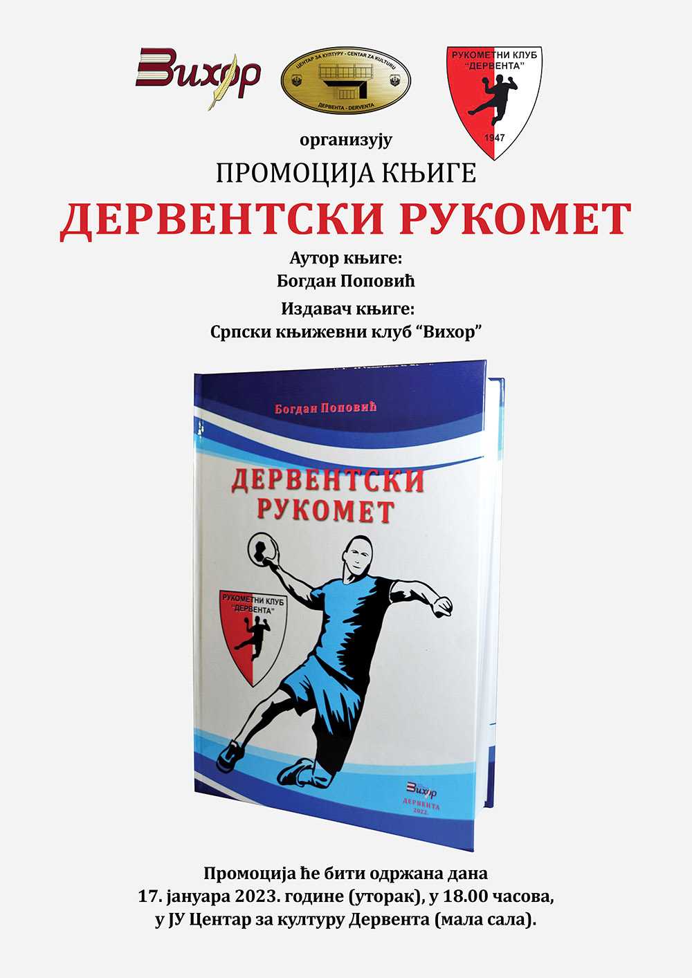 Промоција књиге“ Дервентски рукомет“ аутора Богдана Поповић, вишегодишњег спортског рукометног радника, одржаће се у уторак 17. јануара у просторијама Центра за културу Дервента.