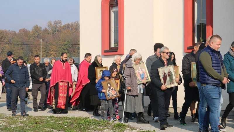 Након Свете литургије услиједио је опход око храма и освештање славског колача и жита.