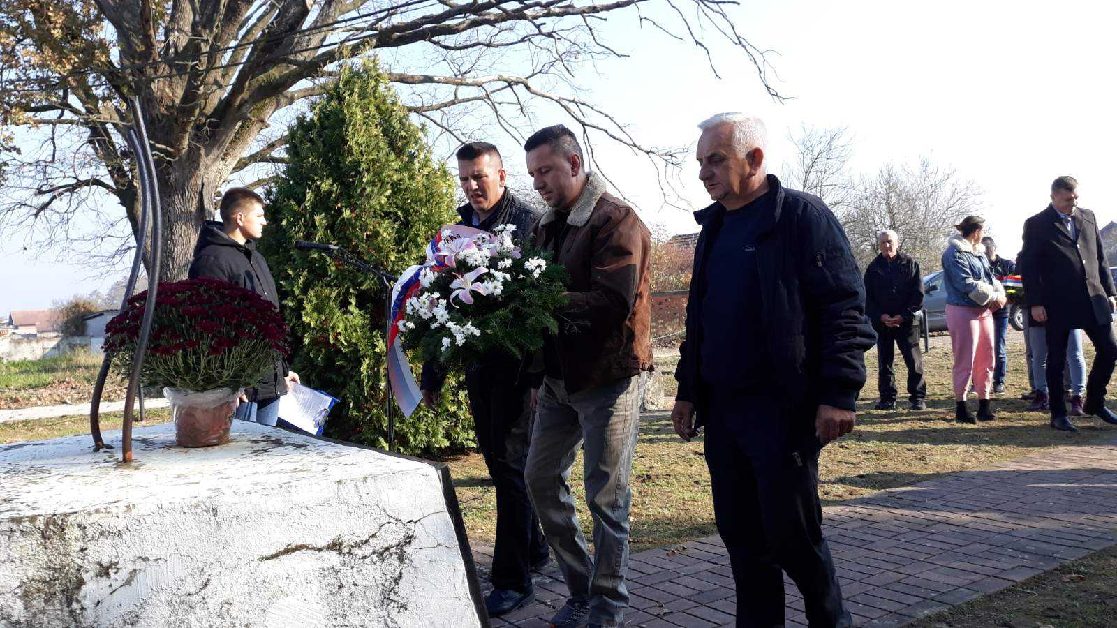 Vijenac ispred spomen-obilježja položila je Anđelka Milanović, majka čiji je sin Jovan poginuo o Odbrambeno oradžbinskom ratu, dok su trojica sinova –boraca ostali trajni invalidi.