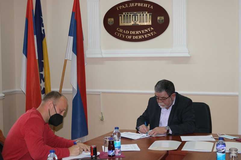 Gradonačelnik Dervente Milorad Simić potpisao je danas ugovore sa izvođačem radova o izradi nosača za videonadzor i ugovor o trećoj fazi radova na putevima, ulicama i ostalim objektima u vrijednosti od 115.000 KM.